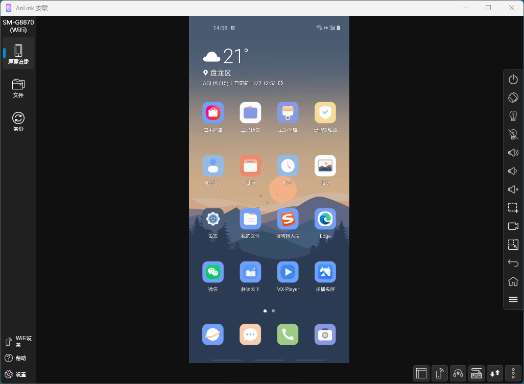文件传输(拖放): AnLink 内置文件管理器。您可以轻松地在电脑和手机之间拖放文件,无需额外的数据线或应用。