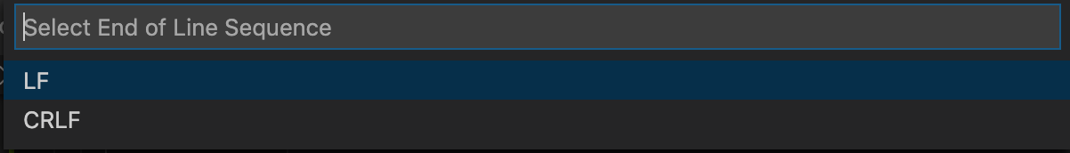 虽然对于不同的操作系统,默认的换行符的表示方法不一样,但是编辑器是可以设置在敲下回车键的时候保存的换行符是什么的,比如常用的 vscode 就可以进行设置。直接点击编辑器右下角的 LF 或者 CRLF,出现如下图所示的设置,直接选择即可。在设置完成之后,在敲回车键,保存在文件中的换行符就是你设置的(CRLF 或者是 LF,设置什么就是什么)。