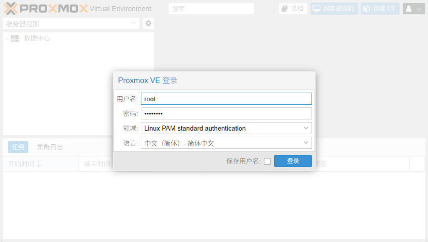 首次登录 Proxmox